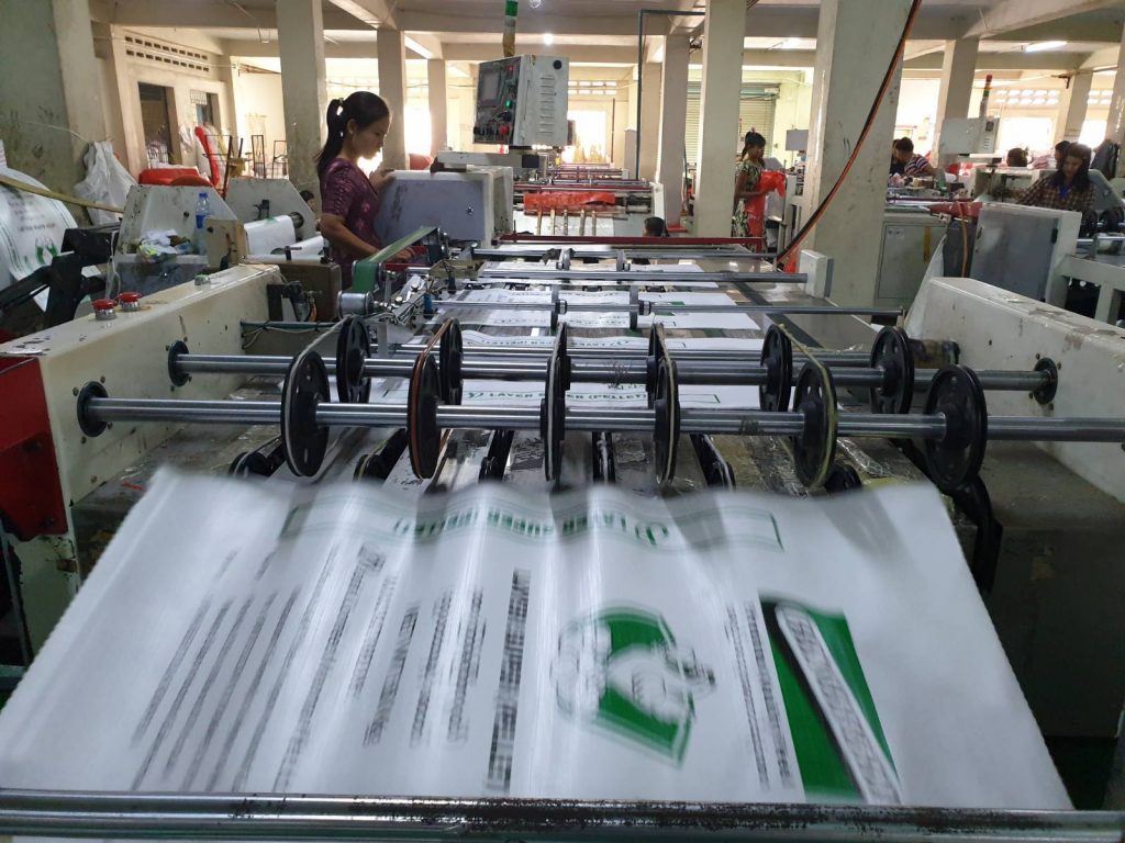 PP woven bag is made from polypropylene resin. Polypropylene, which is also known as PP for a short name, is one kind of thermoplastic resin material. During our production process, it is first made into a plastic film, then drawn into flat tapes. And then the polypropylene tape will be woven in two directions (warp and weft) to create a light, but strong and heavy-duty fabric, which will be used as the main material for packaging making, hence the name woven package.